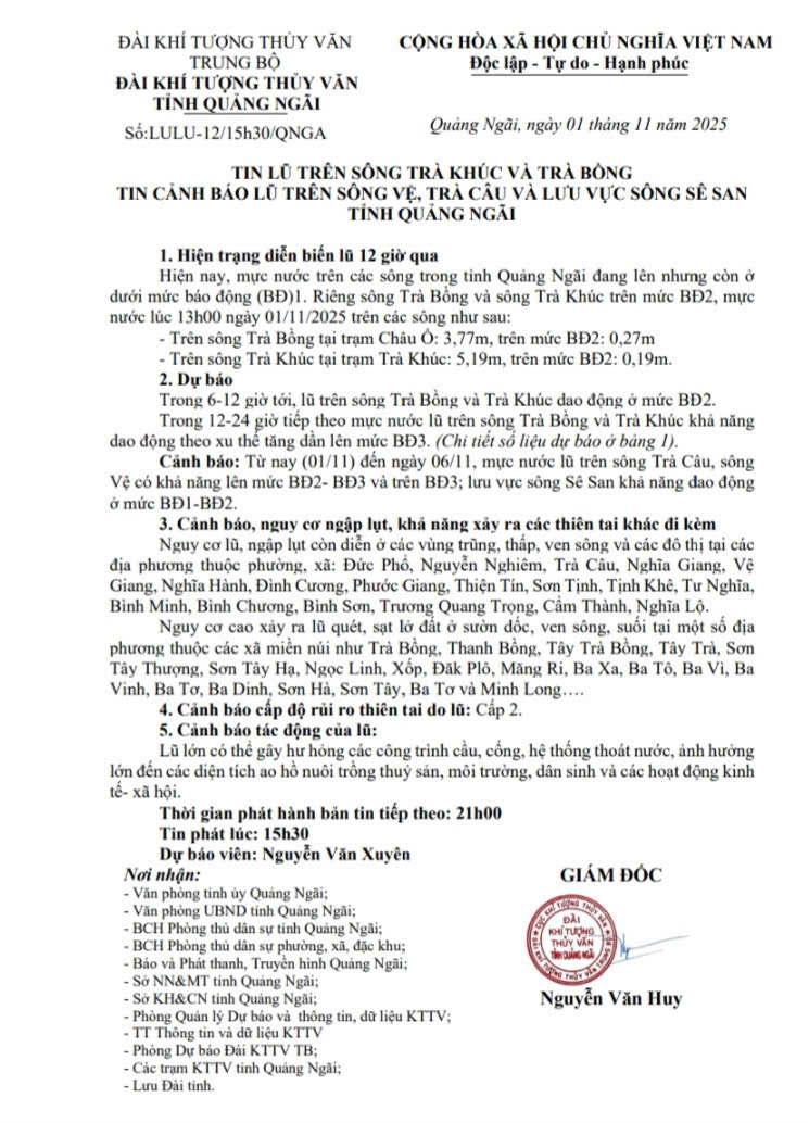 TIN CẢNH BÁO NGẬP LỤT TRÊN ĐỊA BÀN TỈNH QUẢNG NGÃI